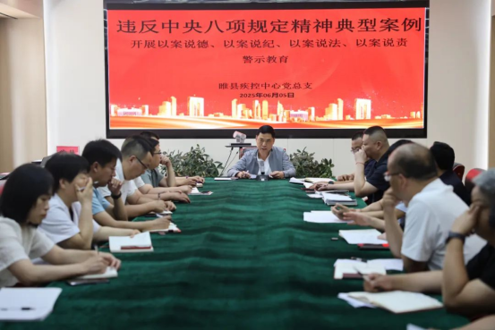 2025-6-9 来源:医药卫生网 - 医药卫生报 浏览:次医药卫生网讯(记者赵忠民 通讯员王志鸣)6月5日下午,睢县疾病预防控制中心召开警示教育会。该中心中层以上干部及党员参加会议,主任刘茂松主持会议并讲话。