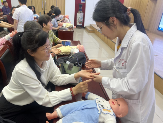 该院中医儿科主任纪江红深入讲解小儿生理特点、经络穴位与脏腑关系,结合季节变化分析儿童常见病症的成因及推拿调理原理,帮助家长建立科学的健康管理认知。针对感冒、发热、咳嗽、夜啼等问题,治疗师现场演示推脾经、揉腹、捏脊等实用手法,详细讲解操作要点、力度控制及注意事项,并指导家长分组练习,逐一纠正手法。