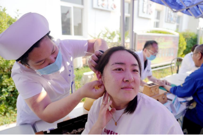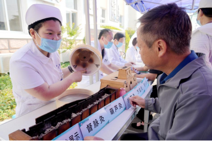 6月10日,焦煤中央医院组织医护人员在医院门诊楼前进行中医健康义诊和科普宣传,现场向群众介绍督脉灸、葫芦灸等中医治疗方式,还给有需要的群众进行针灸、耳穴埋豆等中医疗法的体验,让更多的人认识中医了解中医。(王正勋 侯林峰 王雪)