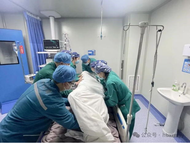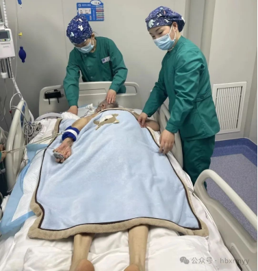 由于患者携带气管插管、中心静脉置管、鼻饲管及导尿管,翻身过程中需确保管路安全、生命体征平稳,操作难度极高。在团队紧密配合下,医护人员成功完成翻身,治疗后患者血氧显著提升,痰液减少,为后续康复赢得宝贵时机。