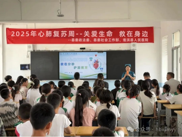 2025-6-11 来源:医药卫生网 - 医药卫生报 浏览:次医药卫生网讯(记者王明杰 通讯员熊丽)淮滨县人民医院6月11日表示,每年6月1日至7日是中国心肺复苏周,今年的主题为“关爱生命,救在身边”。为提高师生急救意识,普及心肺复苏技能,由淮滨县委政法委联合县委社会工作部、淮滨县人民医院到王家岗乡中心学校,开展一场“义诊+科普”双轨并行的心肺复苏急救培训活动。