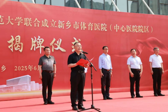 2025-6-13 来源:医药卫生网 - 医药卫生报 浏览:次医药卫生网讯(记者常俊伟 通讯员赵珍 穆培霞 李炳)6月11日,“新乡市体育医院(中心医院院区)揭牌仪式暨运动医学高峰论坛”在新乡市中心医院东院区举行。新乡市体育医院(中心医院院区)由新乡市体育局、新乡市中心医院、河南师范大学体育学院三方联合成立,将“临床医疗+竞技体育+学术研究”深度融合、协同发展。