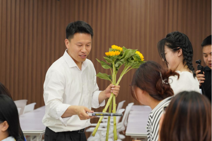 这个本科班是刘亚旋带的第一届本科生,4年来,他始终以“人文关怀+专业引领”的理念陪伴学生成长,从职业规划指导到心理健康支持,从学术资源共享到社会实践搭建,竭尽全力地付出着。学生在校期间表现日益优异,多人获得国家级、省级专业竞赛奖项,这个班也因此获评校级“优秀班集体”。随着毕业脚步的临近,刘亚旋开始把一直以来的想法付诸现实:给每名学生赠送《月亮与六便士》和向日葵花。刘亚旋说:“向日葵是两年前就准备采购的,当时我看到有个新闻,说辅导员给毕业生送向日葵,那个时候我就在想,别的毕业生拥有的,我的毕业生也一定要有。”
