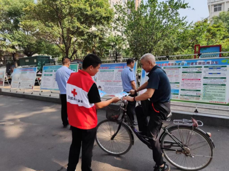 医药卫生网讯(记者王平 通讯员铁银萍 何烨宁 杨培佩)6月13日,平顶山市卫东区卫生健康委、区红十字会组织辖区9家医疗机构,在卫东区人民政府门前开展以“献血传递希望,携手挽救生命”为主题的宣传活动。