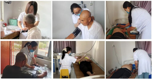 “大爷,您的血压有点偏高,平时要注意饮食,少吃盐,按时吃药。”医生一边为老人测量血压,一边叮嘱道。老人们听着医务人员的讲解,脸上露出了安心的笑容。