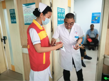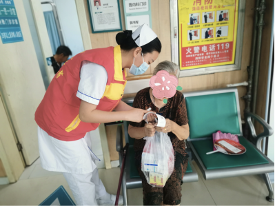 此时此刻,正在门诊大厅巡视的护士李梦竹也敏锐地发觉老人的情况。李梦竹快步走到老人身边,微微蹲下身子,脸上带着关切的笑容,轻声询问老人发生了什么事。在李梦竹耐心的询问下,老人道出了自己的难处——药费一共284.59元,自己的钱没带够,又担心回家取钱往返会耽误下午抓药的时间。郭书军听到后,立即走出诊室,询问老人还差多少钱,并从口袋里掏出100元钱,硬塞到老人手里。李梦竹搀扶老人坐稳,帮老人缴费、取药,还按医嘱注明药物服用剂量和时间,仔细交代完注意事项后,将老人护送离开。