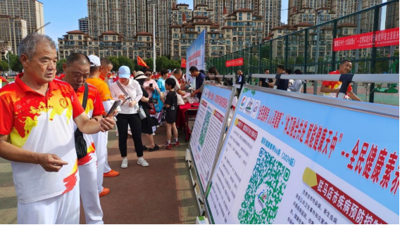在活动主会场左侧,驻马店市卫生健康委、市疾控中心布置的“健康天中行·大医献爱心”科普志愿服务行动宣传展板前围满了参加运动会的健身爱好者,他们通过手机扫描二维码的方式线上答题后领取健康礼包,工作人员还同时发放《帮您懂健康》、三减三健核心信息等书籍、宣传折页。主会场右侧的驻马店广济心血管病医院的专家医疗团队台前,测体重、测血压,医生们耐心为群众讲解戒烟的好处,养成良好的健康生活方式和行为,并就居民常见的健康问题进行答疑解惑,帮助居民改变不良生活习惯,树立健康科学的生活观念,引导群众做自己健康的第一责任人。