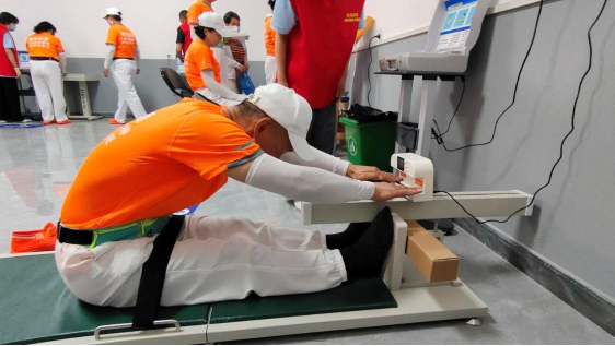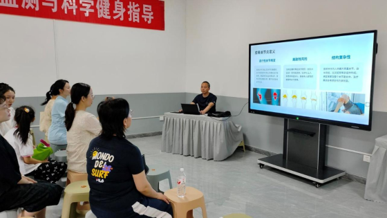 社区运动会结束后,健身爱好者们来到设在市体育场内的市国民体质测定和科学健身指导中心,为初次到来的居民先办一张专属卡。在干净整洁的大厅内,健身爱好者们围坐在一起观看由市第四人民医院的医生正在讲解《戒烟限酒 健康你我》科普知识。大家有序排队进入测试,据了解国民体质测试只要求对20-59周岁的年龄组人员开展目标监测。监测内容包含身高、体重、肺活量、握力、反应时、闭眼单足立、坐位体前屈、纵跳等11个项目。工作人员通过对被检测者身体形态、耐力素质、柔韧素质、力量素质、反应速度、平衡能力、心肺能力等几个大项的测试,可以帮助被测者全面直观了解自身健康状况。“不愧是健身教练,看看这车子蹬得呼呼生风,还是平时坚持锻炼身体好啊!蹬车不费力,腿部有劲。”参加功能车测试的王女士引来同伴的交口称赞。
