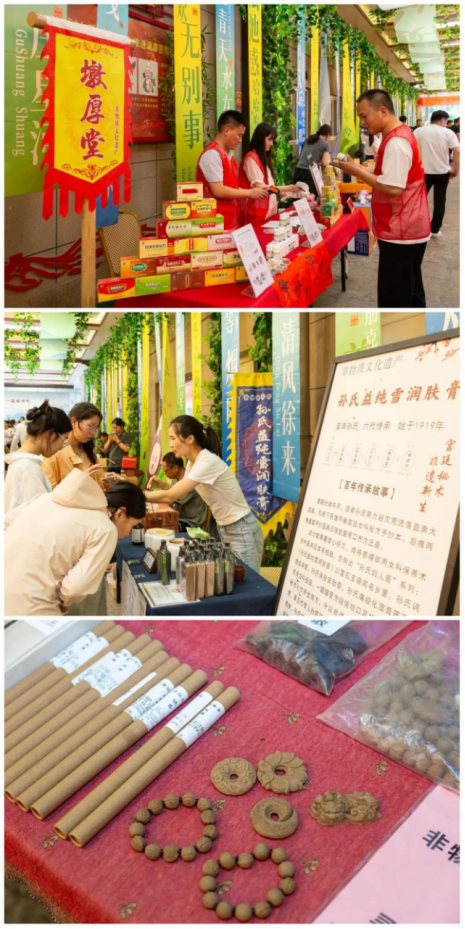 除了中医疗法体验,本次“中医开放日”还特别设置了非遗项目展示区,让年轻人们在感受健康魅力的同时,也能领略到中医文化的深厚底蕴。踏入回春集,墩厚堂骨伤病中医疗法、孙氏益纯雪润肤膏、叶氏合香制作技艺等国家级、省市级传统医药非遗项目精彩亮相。传承人们手法娴熟,将古老技艺展现得淋漓尽致。