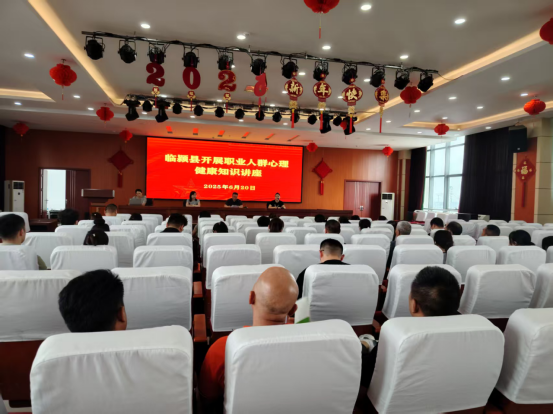 此次活动,临颍县疾控中心副主任米富德首先向职工强调心理健康的重要性,随后邀请心理健康知识科普专家针对职业人群常见心理健康问题的预防与干预进行现场授课,内容包含情绪管理、压力疏导、职业焦虑、抑郁、睡眠、职业倦怠等内容。他们凭借丰富的理论知识和实践经验,以通俗易懂的语言、生动形象的案例,从解码心理压力、构建积极心态、实现人生价值等方面展开深入讲解,让大家在轻松愉快的氛围中学习心理调适技巧,帮助职工们学会正确面对压力,保持积极乐观的心态。
