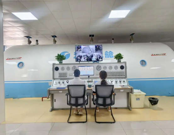 据了解,新投入使用的高压氧舱共引进16人吸氧治疗设备并配备软座,环境宽敞舒适。舱内配备智能监控系统,实时调控压力、氧浓度及温湿度,全程数字化保障安全。