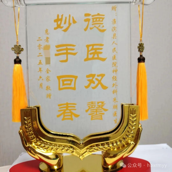 目前,患者已康复出院,家属为表感激之情,特向神经外科和神经重症监护室赠送锦旗。锦旗上熠熠生辉的文字,承载着家属对医护团队精湛技术和悉心护理的高度认可和诚挚谢意。