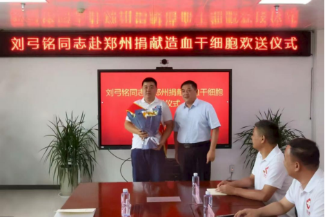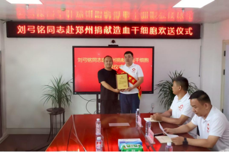 商丘市梁园区举行刘弓铭赴郑州捐献造血干细胞欢送仪式