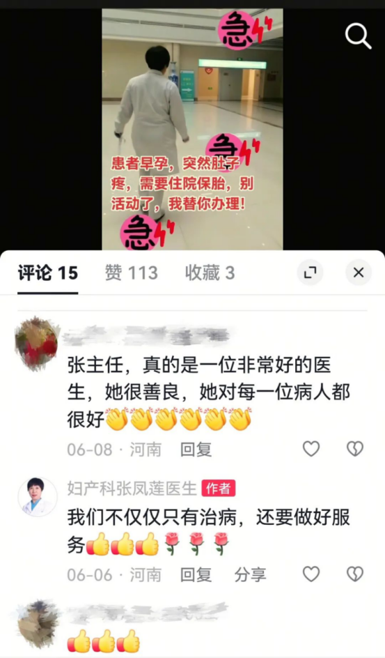 张凤莲始终将患者的需求放在首位,秉持着优质服务的理念。不久前,一位因试管婴儿先兆流产的患者前来就诊,情况十分紧急。张凤莲见状,二话不说,放下手头的工作,为患者办理住院手续。这一幕恰被旁人用手机记录,后由张凤莲发布至自媒体平台。没想到,这段视频迅速引发了网友们的关注,短短时间内,浏览量就达到了2.2 万,并且还在持续上升。评论区里,网友们纷纷为张凤莲的暖心举动点赞,有人说:“这才是真正的医者仁心,被这样的医生治疗,患者心里得多踏实啊!”还有人感慨:“从张主任的行动中,看到了医疗行业最温暖的一面。”