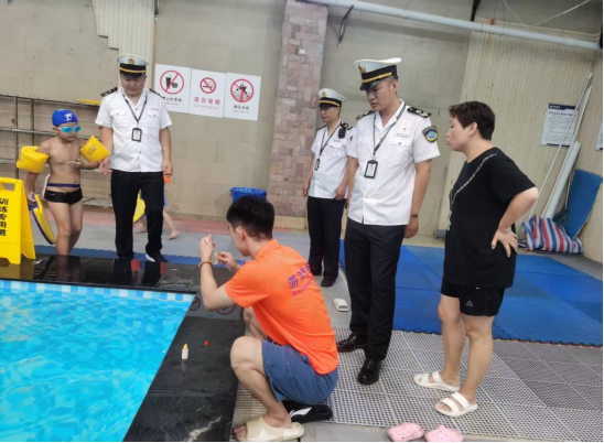 此次专项行动以经营性游泳场所为重点。执法人员依据《公共场所卫生管理条例》《游泳场所卫生管理条例》《游泳场所卫生规范》等法规,采取“现场检查+快速检测”相结合的方式,重点检查四个方面:一是卫生管理情况,核查场所卫生许可证、从业人员健康证明是否齐全有效,卫生管理制度是否落实到位;二是设施设备情况,检查淋浴设施、浸脚消毒池、循环净化消毒设备运行状况;三是水质安全情况,利用快速检测设备对泳池水余氯、pH值、浑浊度、尿素等指标进行现场检测;四是公示情况,查看水质检测结果、卫生信誉度等级等信息是否按要求公示。