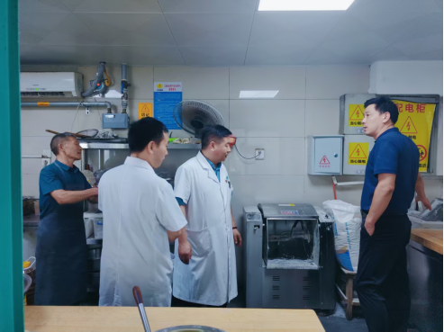 本次检查聚焦夏季食品安全风险点。该中心深入职工食堂,重点对食材储存、加工制作、环境卫生三大环节进行细致排查。在食材储存区,该中心仔细查看了蔬菜、肉类、调味品等储存条件,要求严格执行“先进先出”原则,确保冷藏冷冻设备温度达标,生熟食品分开存放,杜绝变质风险;随后,对食品加工区域的清洁状况、餐具消毒记录进行逐一查看,要求工作人员严格落实每日清洁和环境消杀,规范操作流程,防止交叉污染。