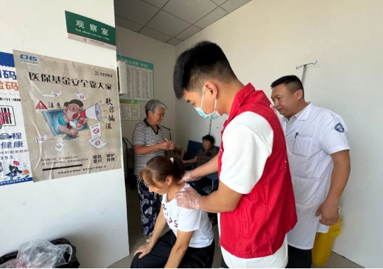 活动现场,村民们早早前来,热情高涨。卫生院经验丰富的中医师们耐心为村民们进行中医把脉、体质辨识,详细询问他们的身体状况,针对不同病症和体质提供专业的诊疗建议和个性化的养生方案。为村民免费测量血压,针对血压异常的村民给予专业饮食和生活建议。中医按摩、刮痧、针灸、贴耳穴、三伏贴体验区也排起了长队,医务人员凭借精湛技术,耐心为每一位村民操作,同时细致讲解这些中医疗法对常见疾病的预防与调理作用,让村民亲身体验中医药的独特疗效。