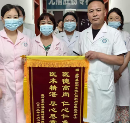 唐河县泗洲街道卫生院:微创治愈多年肛瘘 六旬患者赠锦旗表谢意