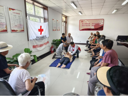 该院组织医护人员为现场群众培训心肺复苏急救知识。用通俗易懂的语言拆解操作原理,配合规范标准的动作演示,重点讲解并演示了心肺复苏的操作流程与核心要点。并告诉大家,遇有人突然昏迷等紧急情况时,需保持冷静,运用所学技能开展自救互救或指导他人施救。培训过程中,医护人员与居民展开面对面互动,现场纠正不规范操作,确保教学实效。培训结束后,医院红十字志愿服务队专家为居民提供义诊服务,服务群众近50人次。