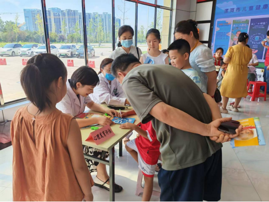 在“小视力”筛查区域,眼科专家们细致地为孩子们进行视力检查,耐心地为家长们讲解近视防控要点,并为存在视力异常风险的孩子建立屈光档案,提供个性化的护眼建议。