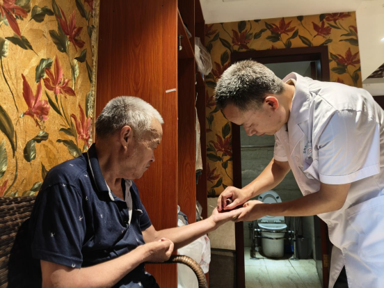 当天下午,侯会彦为包括金大爷、程大伯等在内的多位老人开展了首次中医康复服务:为金大爷腰部和腿部的穴位施针,配合推拿放松肌肉;给程大伯进行肢体被动活动和针灸治疗,促进肢体功能恢复;还留下《老年中医康养手册》,标注“每日踮脚练习”“睡前泡脚配方”等实用内容。“侯主任不仅看病,还教我们怎么日常养护,这才是真正的‘康养’。”李俊鹏说。