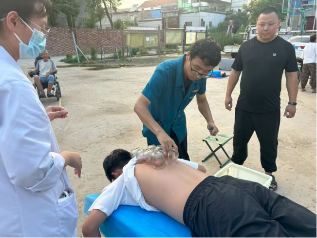 活动特别设置了丰富多样的中医特色体验项目:针灸、推拿、葫芦灸、耳穴压豆、中药泡脚等深受群众欢迎。群众在专业医护人员的指导下,亲身体验中医适宜技术带来的奇妙效果,纷纷对中医的神奇功效赞不绝口。一位体验完推拿的大爷开心地说:“最近肩膀一直疼,经过医生这么一推,感觉轻松多了,中医真是有两下子!”