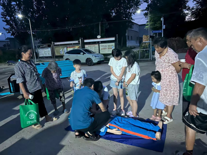医护人员贴心地为群众准备了酸梅汤、健脾祛湿茶等茶饮,不仅消暑解渴,还具有一定的养生功效。让群众在享受健康服务的同时,感受到了丝丝清凉。还为每位到场居民免费赠送中药香包、莲花清咳片等药品,并由专业人员详细讲解药品适用症状与服用方法,指导居民做好呼吸道健康防护;现场设置中医药展示区,引得居民们纷纷驻足,好奇地观察药材形态、感受传统疗法的神奇魅力。在急救技能演示环节,医护人员借助模拟人通俗易懂的动作及语言讲解心肺复苏要点,让群众更加清晰地了解急救知识,掌握急救技能。