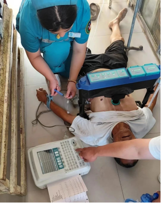 时间拉回到了7月10日这天。当天清晨8时38分,年近七旬的张大伯持续胸痛胸闷五天,症状加重,遂到该村卫生室问诊。刚坐定,便一头栽倒在地。