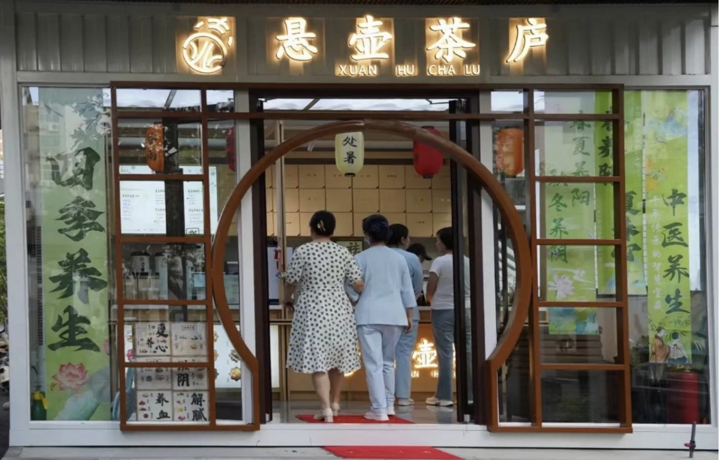 张小姐是众多品尝中药养生茶饮的代表者。记者在“悬壶茶庐”中药养生茶饮店看到,这里古朴雅致的中式装修风格让人眼前一亮。原木色的桌椅与墙上悬挂的中医药文化字画相得益彰,营造出宁静祥和的氛围。开放式茶座区内,茶客们正品着茶轻声交谈,空气中弥漫着黄芪、枸杞等中药材的淡淡清香。传统中医药文化与现代茶饮文化的巧妙融合,带来了全新健康养生体验,吸引众多居民前来打卡。
