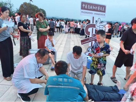 互动环节活力迸发。八段锦教学区,专业医师带领市民舒展筋骨,古老功法在夜色中焕发生机。急救知识普及区吸引众多家庭驻足,医护人员手把手传授实用急救技能。儿科特色治疗体验区成为孩子们的乐园:专业义诊、科普讲解、轻柔推拿、趣味穴位贴敷,参与游戏后还能获得特制中药棒棒糖或消食膏,欢声笑语中播撒传承种子。直播捕捉的精彩瞬间也带动线上“云学习”热潮。