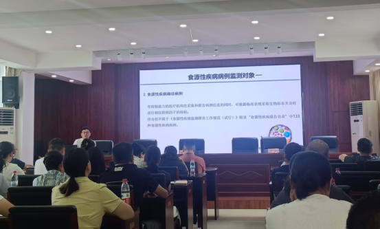 此次培训,邀请漯河市卫生健康委、市疾控中心专业人员进行授课,分别围绕食源性疾病监测的背景意义、监测的依据及目的、食源性疾病的定义、病例报送的流程、时限和报告内容、网报信息、食源性报告卡填写的注意事项等内容进行了详细讲解,并结合实际案例分析了食源性疾病的应急处置流程。
