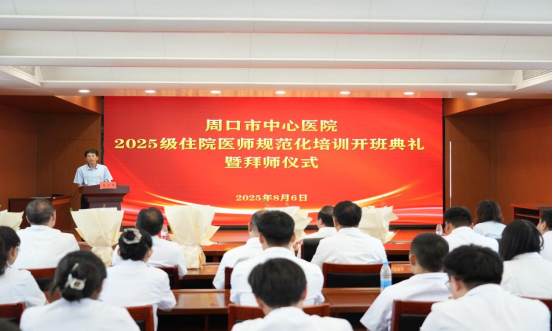 2025-8-8 来源:医药卫生网 - 医药卫生报 浏览:次医药卫生网讯(记者侯少飞 通讯员郭永伟)8月6日,2025级住院医师规范化培训开班典礼暨拜师仪式在周口市中心医院人民路院区举行。党委书记、院长冷冰出席会议并讲话,各专业基地负责人、骨干师资、全体住培责任导师及2025级全体住培学员参会。