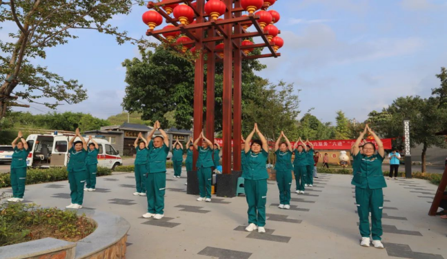 活力开场·健身拍打操:公卫科全体人员身着统一服装,精神抖擞,现场示范教学简单易学、节奏轻快的“健身拍打操”。拍打声与音乐节拍相和,瞬间点燃现场氛围,吸引了众多村民,尤其是中老年人跟随练习,在律动中感受经络疏通、气血畅通的益处。
