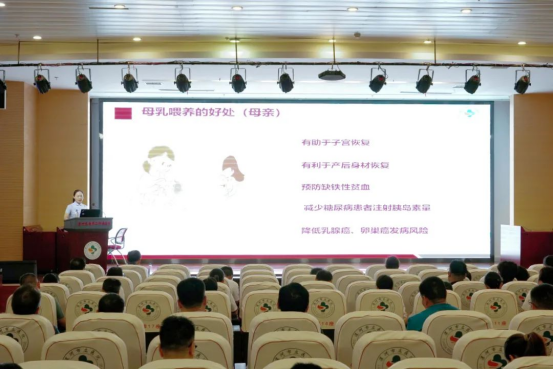 护士长谭少允通过讲解母乳喂养技巧、母乳喂养的常见问题、上班族妈妈的母乳喂养、母乳的文化几个方面,引导宝妈及宝爸树立科学喂养的理念,熟悉了母乳喂养的好处和支持母乳喂养成功的措施及专业技巧,以此保证母乳喂养工作的持续开展。