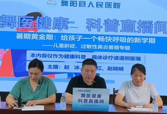 2025-8-12 来源:医药卫生网 - 医药卫生报 浏览:次医药卫生网讯(记者王明杰 通讯员蔡艺航)舞阳县人民医院8月12日介绍,暑假期间,舞阳县人民医院精心策划推出暑期儿童青少年健康专题科普直播活动,以“医防融合”为核心理念,将专业医疗知识转化为家庭可用的健康智慧,为青少年健康成长筑起一道坚实防线。