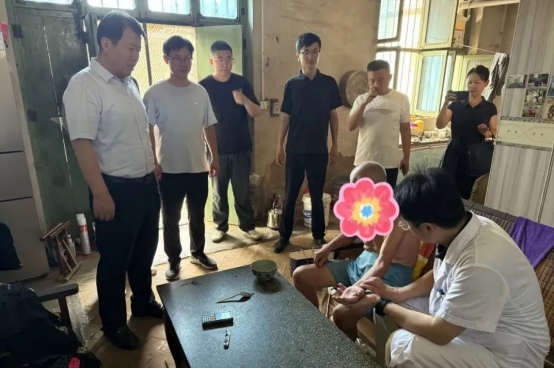 在后店子村困难群众家中,熊延良与乡亲们亲切交谈,详细了解他们身体健康和家庭生活情况,并为行动不便的困难群众现场诊察病情,让群众足不出户享受市级专家的诊疗服务。