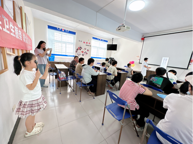 讲座后,医生为孩子们提供了免费的视力检查。针对检查结果,逐一向家长解读并提供个性化护眼建议,并耐心解答了孩子们关于近视成因、护眼方法等疑问,提醒大家关注自身眼健康。