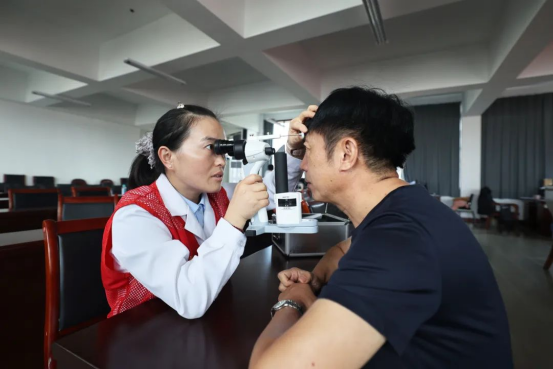 为了更好地提供健康服务,专家团队特意带来了专业的检查仪器,进行眼底检查、测量血压、骨密度检查、健康咨询、体格检查等,与大家进行沟通交流,解答他们的疑点与困惑。