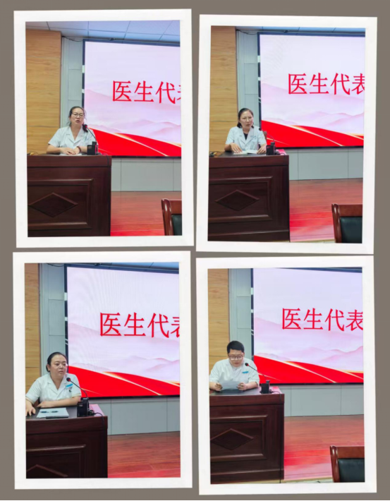 医师代表们结合自身工作实际,踊跃发言,畅谈工作感悟和心得,分享各自在诊疗过程中练就的“拿手活”,为患者解除病痛、赢得信任的专业技能与独特心得,更坦诚交流了工作中遇到的“难忘事”与“心中盼”。既有服务患者的感动瞬间,也包含了对个人未来成长和中心发展的深切期许和努力方向。他们的发言朴实而深刻,充满了对职业的热爱,引发了参会医师的强烈共鸣。