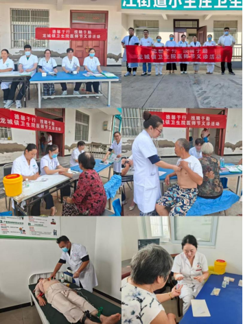 为将“德馨于行,技精于勤”的主题融入日常医疗工作中,切实为群众办实事、送健康,8月15日,龙城镇卫生院组织由内科、外科、中医科、检验科、公卫科等6个科室的10名骨干医师组成的医疗团队,携带血压计、血糖仪、便携式心电图机等医疗设备走进辖区幸福村和小王庄村开展义诊活动。