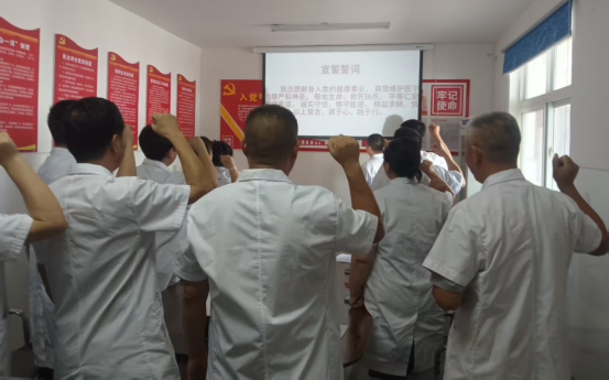 在庄严肃穆的宣誓仪式上,全体医师在副院长王志浩的带领下,右手握拳高举,以铿锵有力的声音齐声重温医师誓言。嘹亮的誓言在大厅回荡,更在每个医师心中激起层层涟漪。