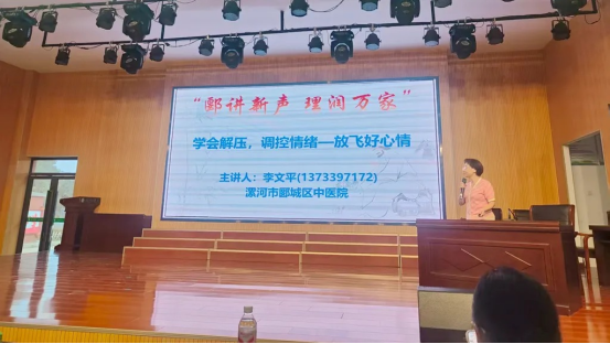 随后,肝胆脾胃科副主任中医师李文平围绕《学会解压,调控情绪——放飞好心情》展开讲解,聚焦教师群体面临的教学任务、学生管理等工作压力,分析情绪波动对脾胃功能、睡眠质量的影响,通过案例分享、中医情志调节法教学,指导教师掌握深呼吸放松、适量运动、积极思考等实用解压技巧,帮助大家在工作中保持良好心态。