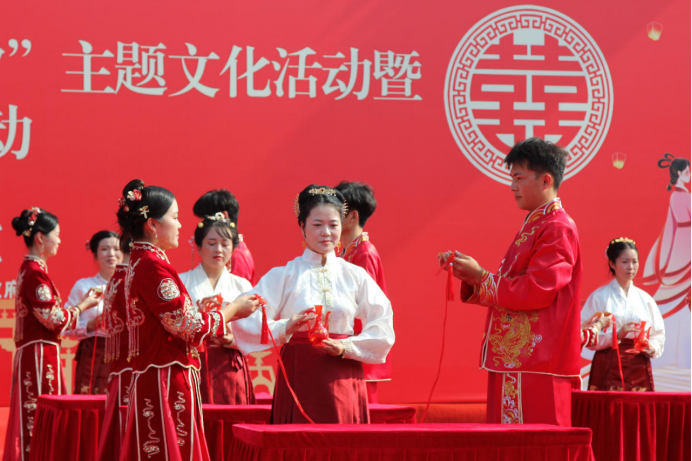 8月29日,2025年河南省“我们的节日・七夕”主题文化活动暨集体婚礼活动在商丘古城归德府衙举行。30对新人在此完成传统婚仪,喜结连理。省委宣传部二级巡视员葛卫华,市委常委、市委秘书长、市委宣传部部长翁铁军等领导出席活动。