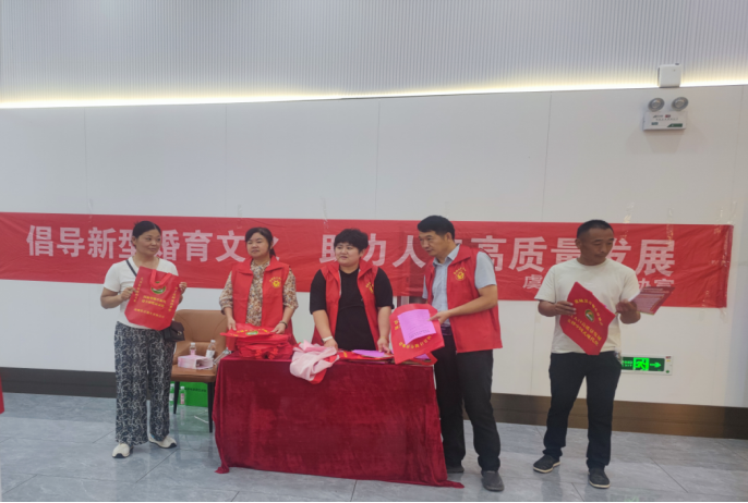 活动现场,虞城县计生协志愿者现场解读三孩生育政策、优生优育知识,发放《婚育新风倡议书》及家庭健康公约宣传册。