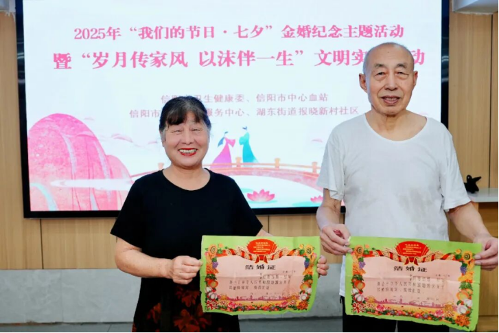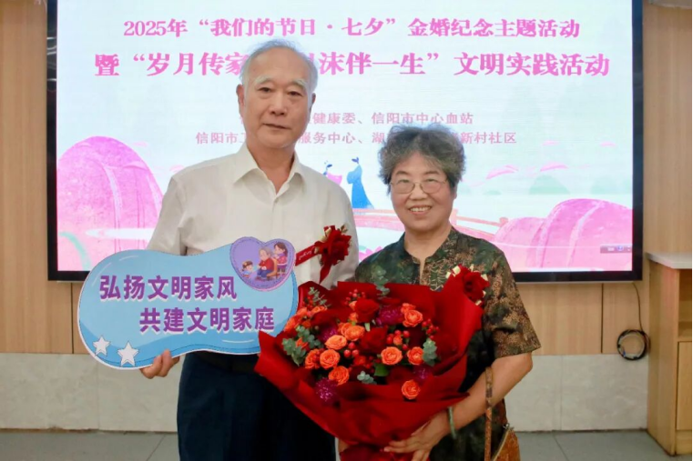信阳市开展2025年“我们的节日·七夕”金婚纪念主题活动暨“岁月传家风 以沫伴一生”文明实践活动