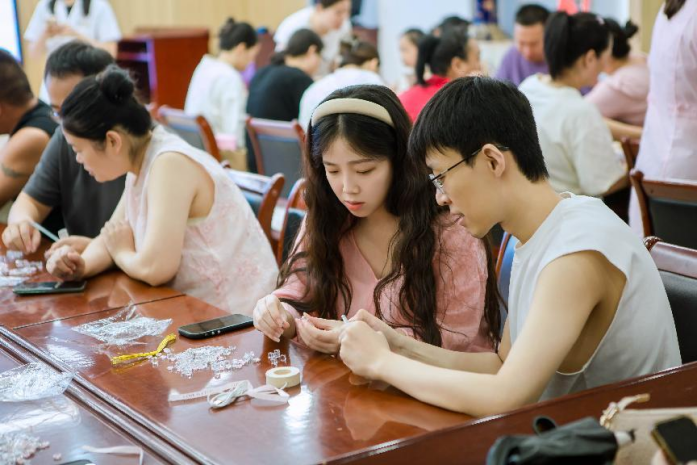 大家共同观看了《七夕节的由来》,在唯美视频里重温牛郎织女的浪漫传说,感受传统文化的魅力,也更珍惜彼此相伴的时光;《夫妻默契大考验》环节爆笑又暖心!准爸妈背对背答题,看看谁才是最懂对方的人!那些异口同声的答案、会心一笑的瞬间,都是爱的最好证明;《抛接糖果球》小游戏好玩又有意义!不仅锻炼孕妈手眼协调,还促进血液循环,更增进了夫妻协作的乐趣。现场一片欢声笑语,甜度超标;最后的手工环节——DIY冰块玫瑰小夜灯!在老师指导下,准爸妈细心制作专属小夜灯,拼冰块、系花瓣、串灯线……每一步都是爱的协作,每一盏灯都是温暖的纪念。