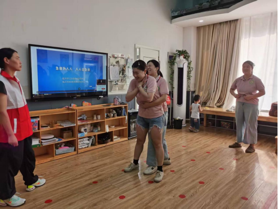志愿者到达幼儿园后,有序开展活动,向教职工普及海姆立克急救法,从理论上讲解气道异物梗阻危害,到借助模型演示操作步骤,再到指导教职工实操练习、纠正动作,确保大家掌握关键要点。与幼儿共同观看趣味动画视频,用生动形式传递急救知识,随后通过现场示范、情景演示,让幼儿直观感受急救场景,虽幼儿难以完全实操,却种下安全意识种子。幼儿园作为幼儿密集且自我保护能力极弱。普及海姆立克急救法,能让教职工甚至参与活动的家长形成“应急共识”,在意外发生时快速反应、科学处置,从“被动等待救援”转为“主动现场施救”,为幼儿筑牢安全防护网。这次活动,志愿者们用专业与耐心传递知识,收获诸多感动。看到教职工认真学习、家长积极提问,幼儿们好奇又专注的眼神,大家深知这份付出的价值。