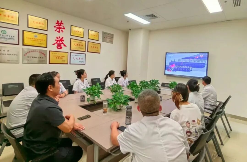 信阳市中心医院组织观看纪念中国人民抗日战争暨世界反法西斯战争胜利80周年大会