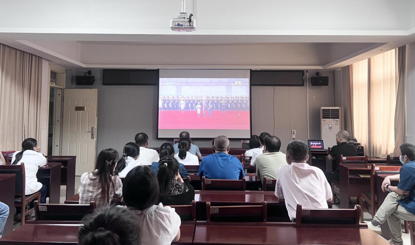 漯河市郾城区李集镇卫生院职工观看纪念中国人民抗日战争暨世界反法西斯战争胜利80周年大会