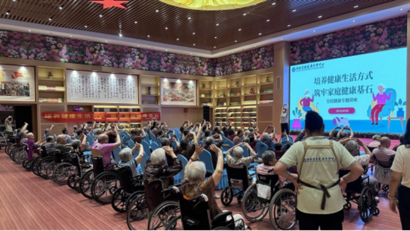 该中心在圣德康养中心宣传活动现场,通过健康操练习、科普演讲、发放宣传折页及宣传品等方式,针对老年人群开展健康教育活动。该中心工作人员围绕“培养健康生活方式,筑牢家庭健康基石”宣传主题,对适合老年人群的健康生活方式进行讲解,以减盐带动减油减糖,持续传播“三减”知识;倡导合理用牙、科学护牙、全面口腔护理的观念,倡导“强肌健骨增力量”“管体重、强骨骼”“运动是良医”的理念,营造人人享有健康骨骼的家庭健康环境。